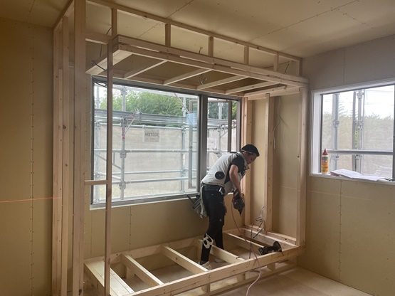 石膏ボードが貼られました。