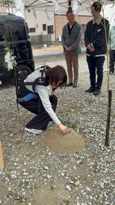 ご家族、関係者みんなで土地の神様にご挨拶をし、これから始まる工事の安全と、ここで紡がれていく暮らしを祈願しました。