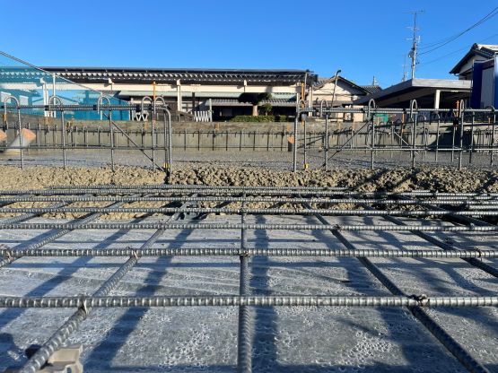 まずは地盤を整え、防湿シートを敷き、鉄筋を組んでいきます。
