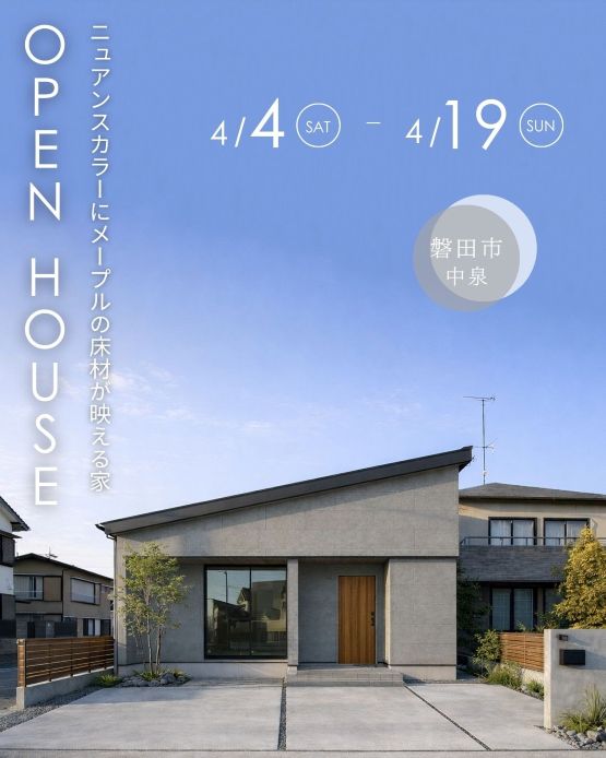 こちらのお宅、4/4(土)~4/19(日)まで完成現場見学会を開催致します!