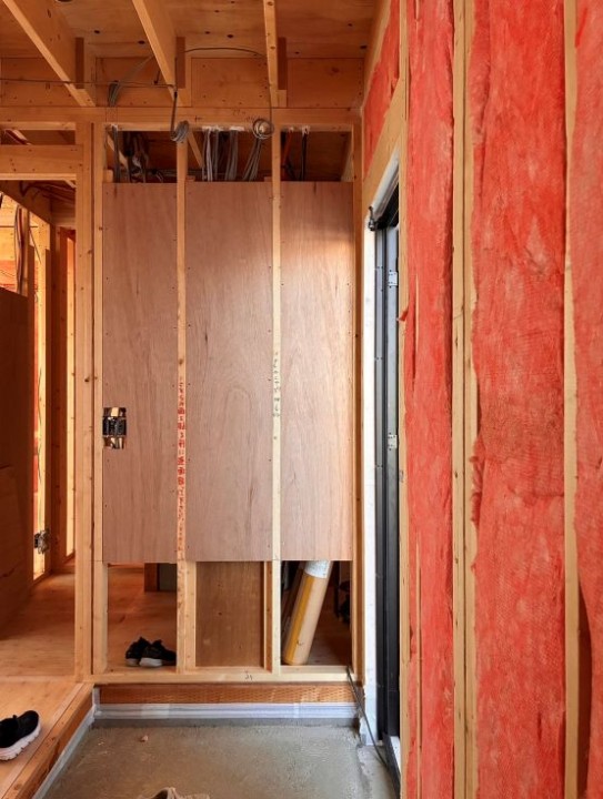 壁に合板が入れられています。
