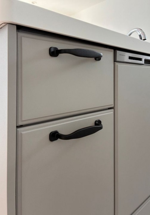 ふちのある框(かまち)デザインを採用。取手はネコアシブラック。主張しすぎないかわいさがあります!