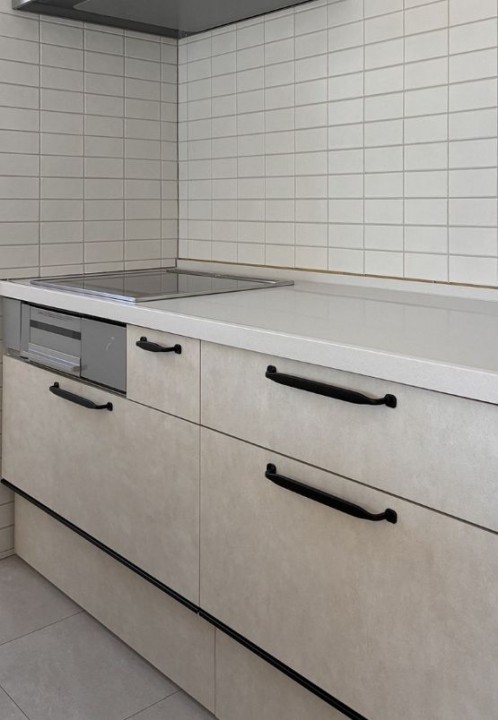 つづいてカップボード側。トッコモカクリーム。ミルクティーベージュのようなカラーです。あたたかみを感じるやさしい色合いです!