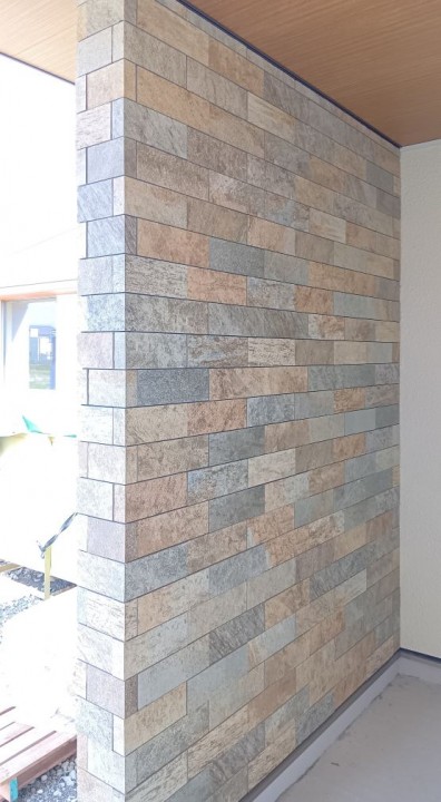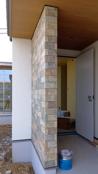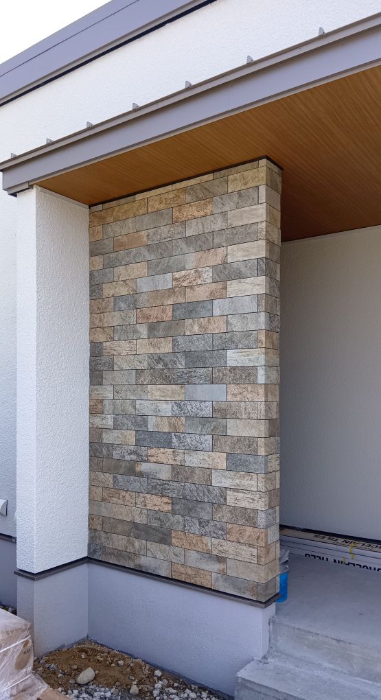 ついに玄関まわりのアクセントタイルが貼られました!