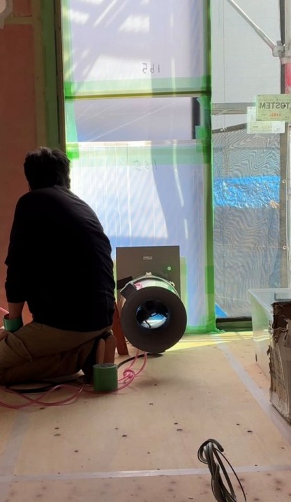 中間時の気密測定を行いました。