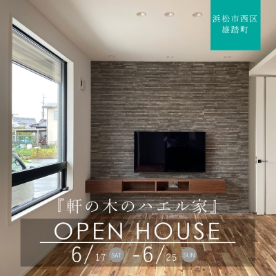 イベント 2023.06.06 OPEN HOUSE in 浜松市西区 軒の木のハエル家 6月17日(土)から6月25日(日)の9日間、雄踏町にて完成したばかりのお住まいでOPEN HOUSEを開催致します!...