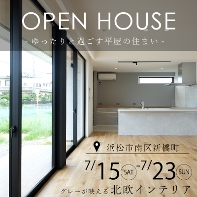 イベント 2023.07.21 OPEN HOUSE in 浜松市南区新橋 -ゆったり過ごす平屋の住まい 北欧インテリアに囲まれて- 7月15日(土)から7月23日(日)の9日間、浜松市南区新橋町にて完成したばかりのお住まいで...