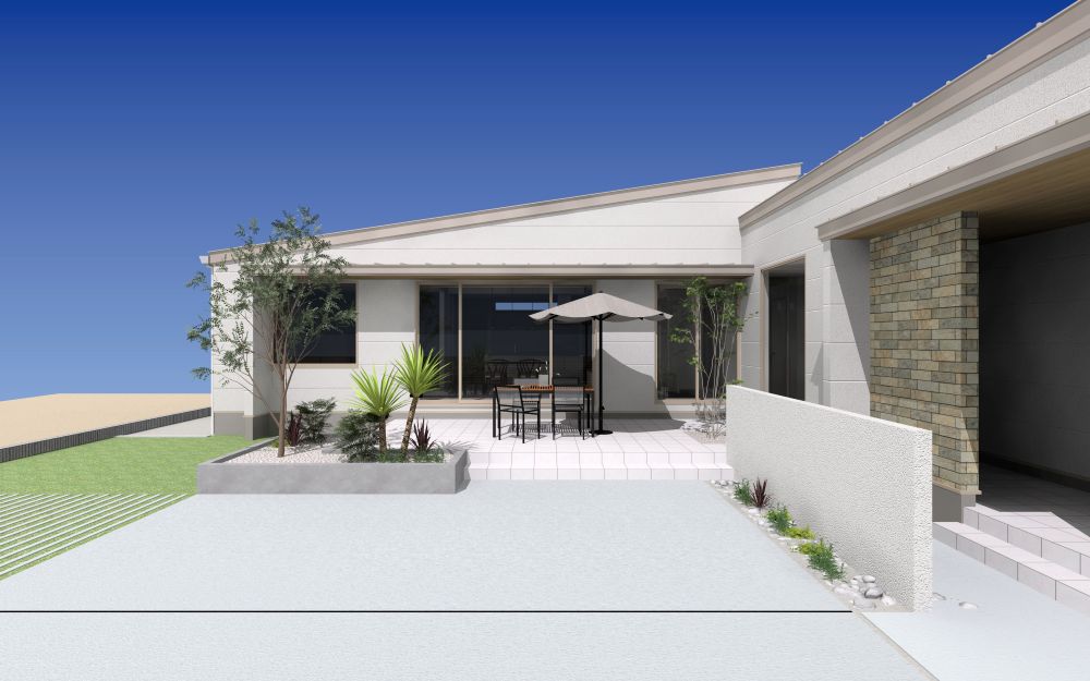 外構工事も完成。リゾートといえばヤシの木。